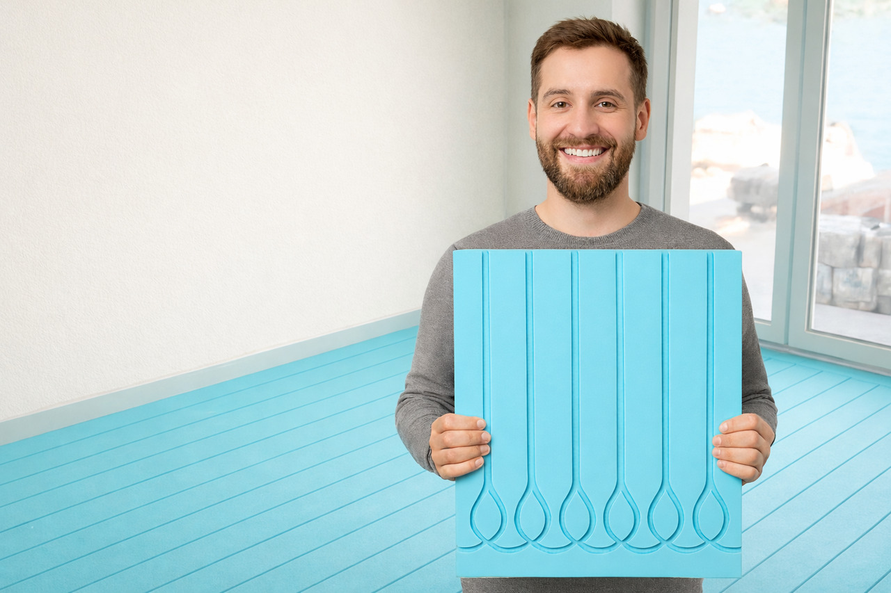 Jesteśmy producentem ogrzewania podłogowego tak zwanego suchego, czyli bez zastosowania wylewek betonowych. Jest to lekki system Ogrzewania podłogowego, używany często w domach drewnianych, remontach i starych kamienicach.